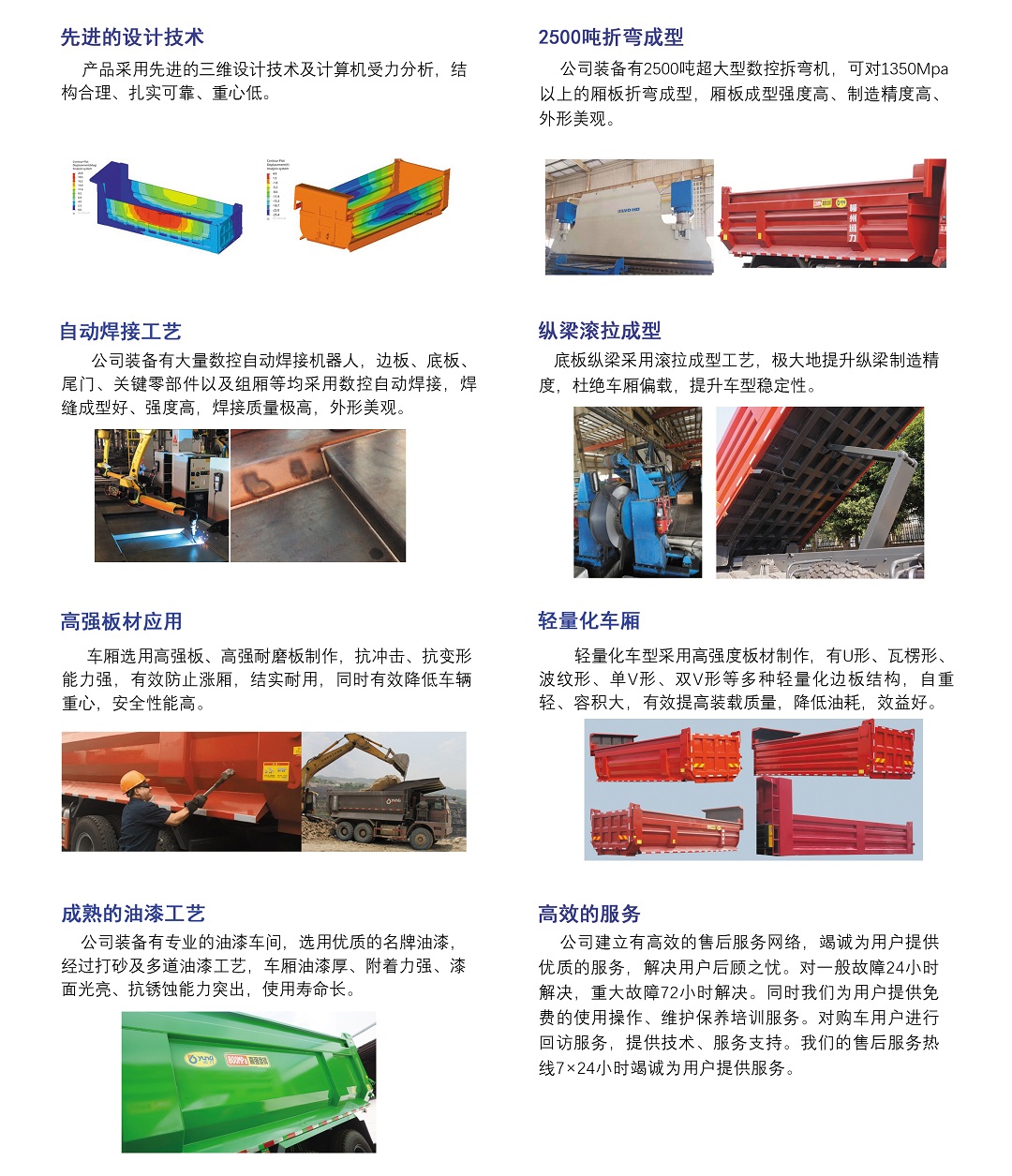 自卸汽車是公司的主打產(chǎn)品之一,產(chǎn)品榮獲“廣西名牌產(chǎn)品”稱號。全系又細(xì)分為重型工程自卸車系列、輕量化自卸車系列、城市智能渣土車系列、礦運車系列等。產(chǎn)品采用三維設(shè)計,經(jīng)受力分析,整車性能突出、結(jié)構(gòu)合理、重心低、可靠性高。產(chǎn)品有著優(yōu)秀的產(chǎn)品質(zhì)量,在區(qū)域市場中占有率一直保持前列,在海外市場也擁有不俗的市場份額。