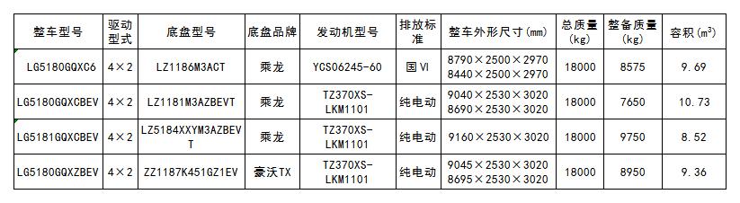 洗掃車產(chǎn)品參數(shù)(截止至工信部第354批公告)