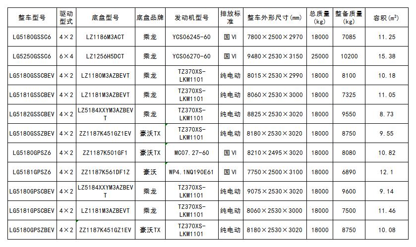 灑水車產(chǎn)品參數(shù)(截止至工信部第354批公告)